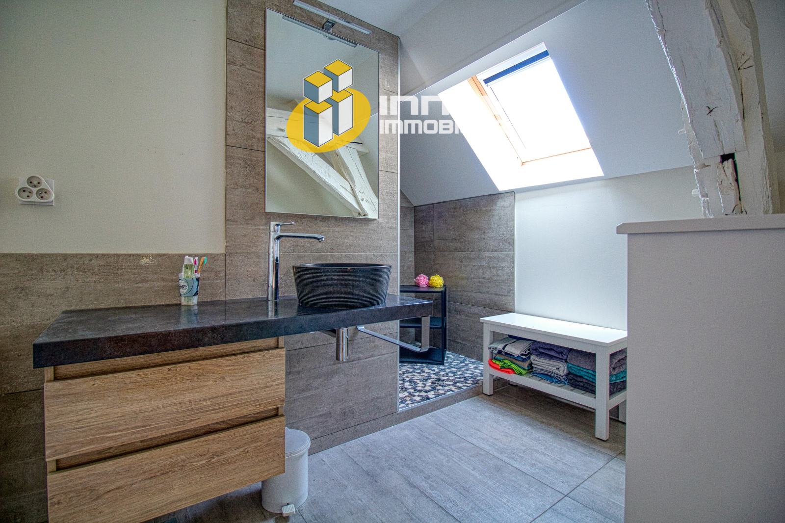 Un couloir vous mène ensuite à une salle d’eau moderne avec sa grande douche et ses équipements, puis des toilettes indépendantes complètent l’étage. Vous découvrez ensuite un espace aménager en bureau mais qui pourrait devenir une chambre supplémentaire sans trop de travaux.